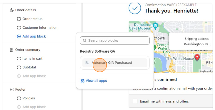 As we placed the block below the Buy Button, the Add to Registry button appears: