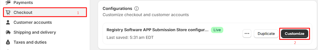 Go To Settings👉Checkout👉Customize - Select Settings from the left panel and scroll down to